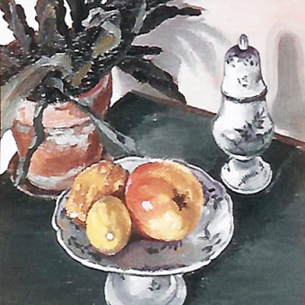 Plusieurs natures mortes ont été composées avec les objets de décoration de son intérieur (nature morte à la cruche, au chandelier, au compotier) avec une présentation vue en plongée.