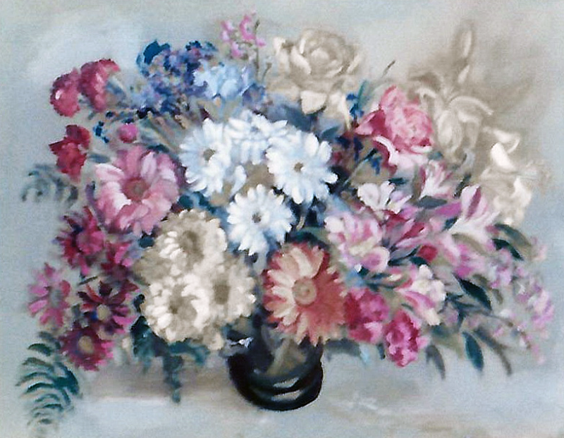 Passionnée de jardins et de fleurs (tant à Colmar qu’à Orbey autour du chalet« Chanteclair ») Madeleine Prud’homme Hartemann passait du temps à parcourir les catalogues d’horticulteurs, puis dans ses jardins au milieu de ses plantations. La tentation était grande de retransmettre sur la toile les impressions de ses bouquets. De nombreuses toiles ont été peintes et vendues ou données. Ses études de bouquets sont très modernes de facture.